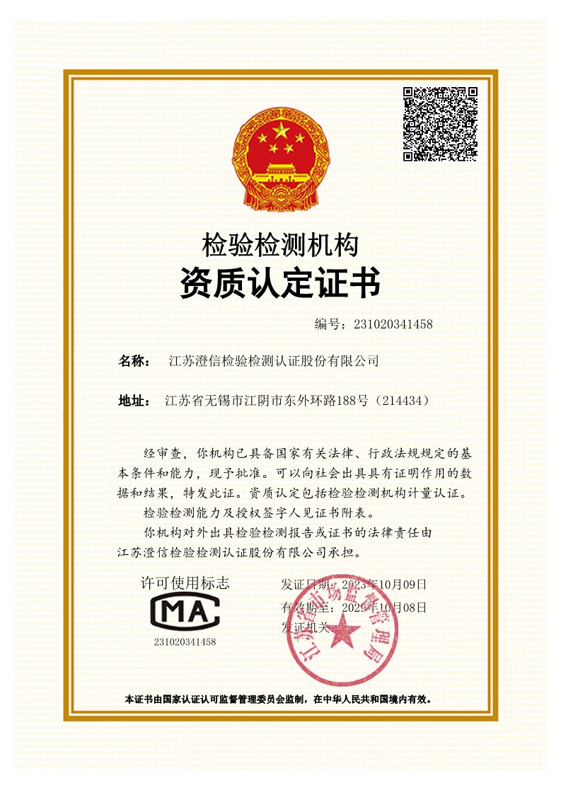 近日,江蘇澄信檢驗檢測認證股份有限公司及江蘇澄信環境檢測技術有限公司申請的CMA擴項,順利通過江蘇省市場監督管理局委派的專家組評審。本次新增能力,聚焦食品相關產品、輕工產品、化工、環境四大領域,涵蓋直